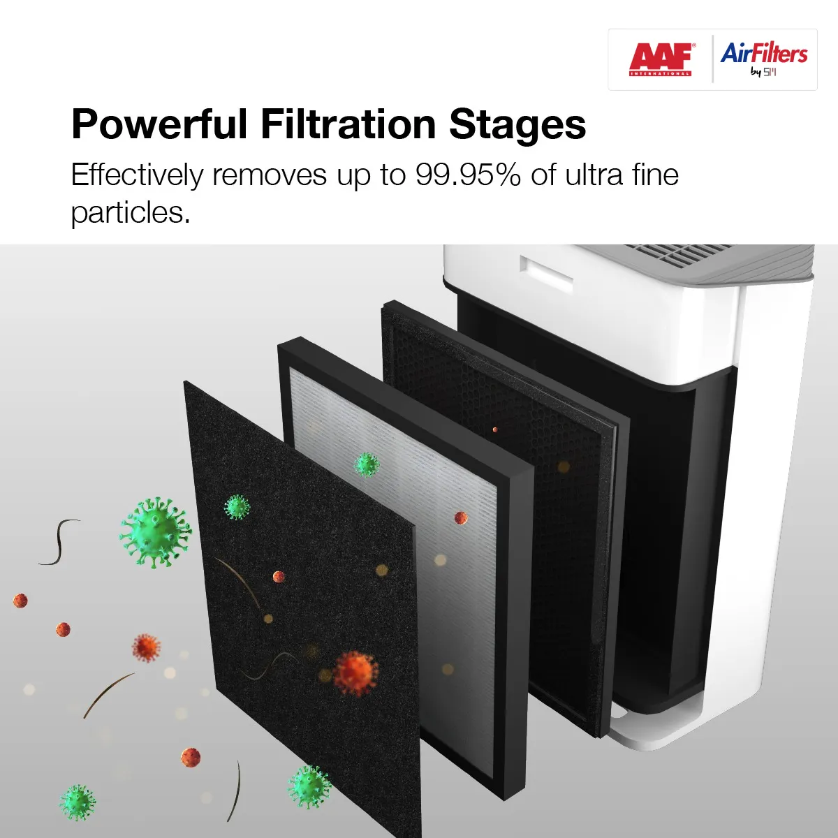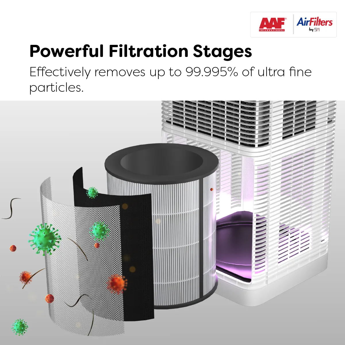 AstroPure PT300A delivers powerful, cost-friendly air purification with a true composite H13 HEPA filter, combining pre and honeycomb activated carbon filter to remove dust, dirt, hair, pet dander and other large particles from the air. Designed for efficiency and portability, it is perfect for medium to large spaces — experience cleaner air today!