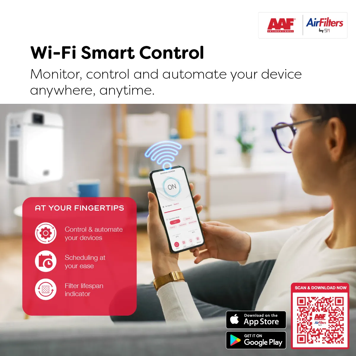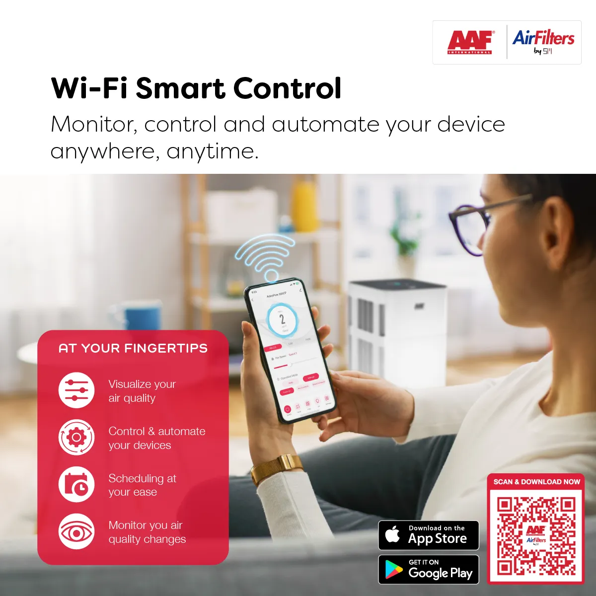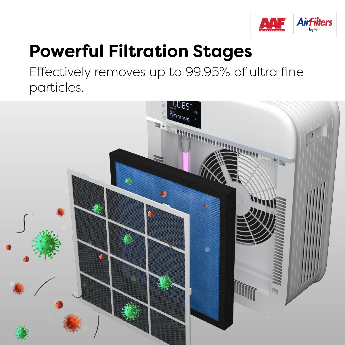 AstroPure 550CP combines powerful 4-stage filtration to purify polluted air, such as as pollen, haze, fine dust, harmful gases & odours, and even health threatening microorganisms. With remote control via mobile devices, intelligent sensors, H14 HEPA filtration and final stage UV-C Ultraviolet Solution and Plasma, it ensures safe, clean air and additional protection against airborne infection wherever you need it — breathe the difference today!