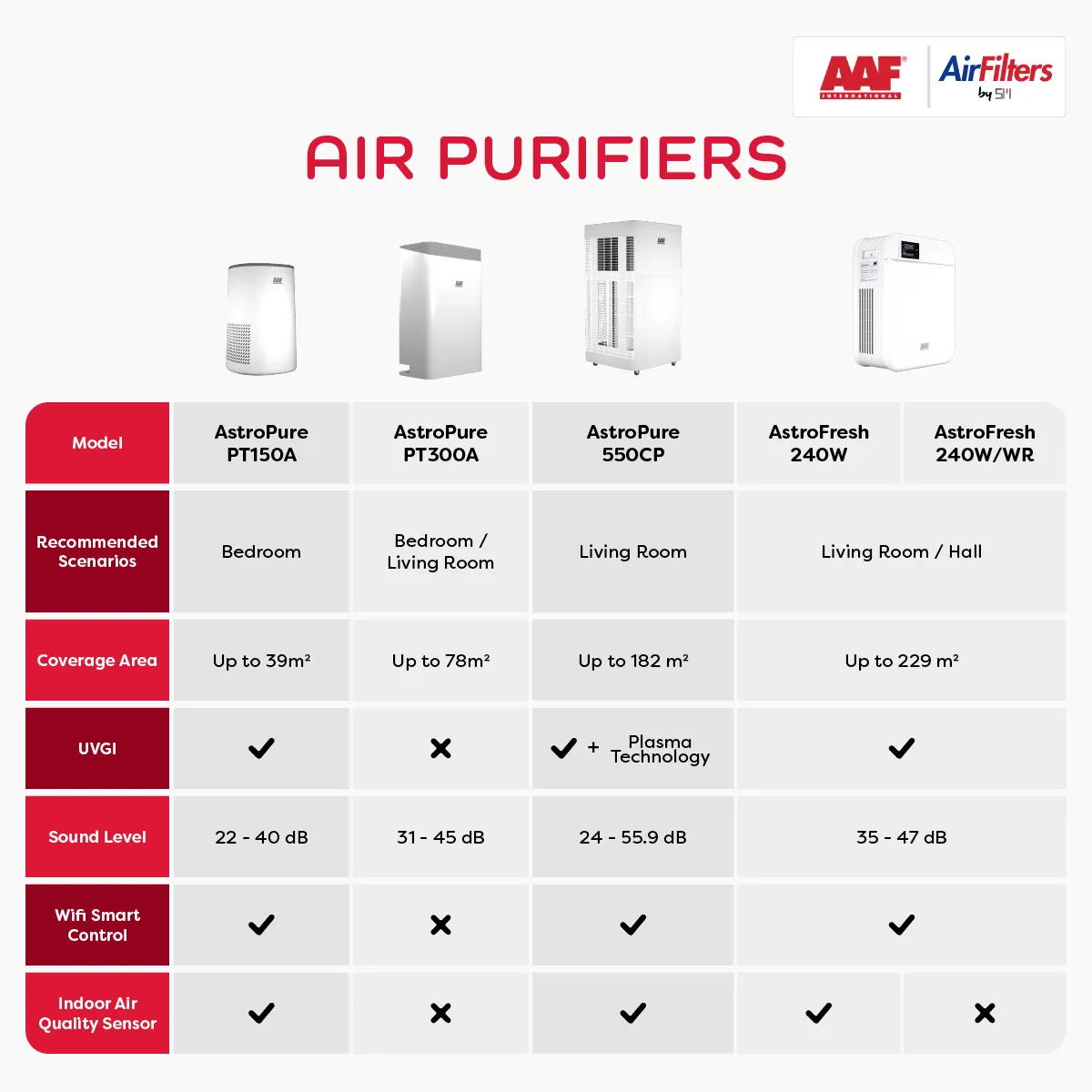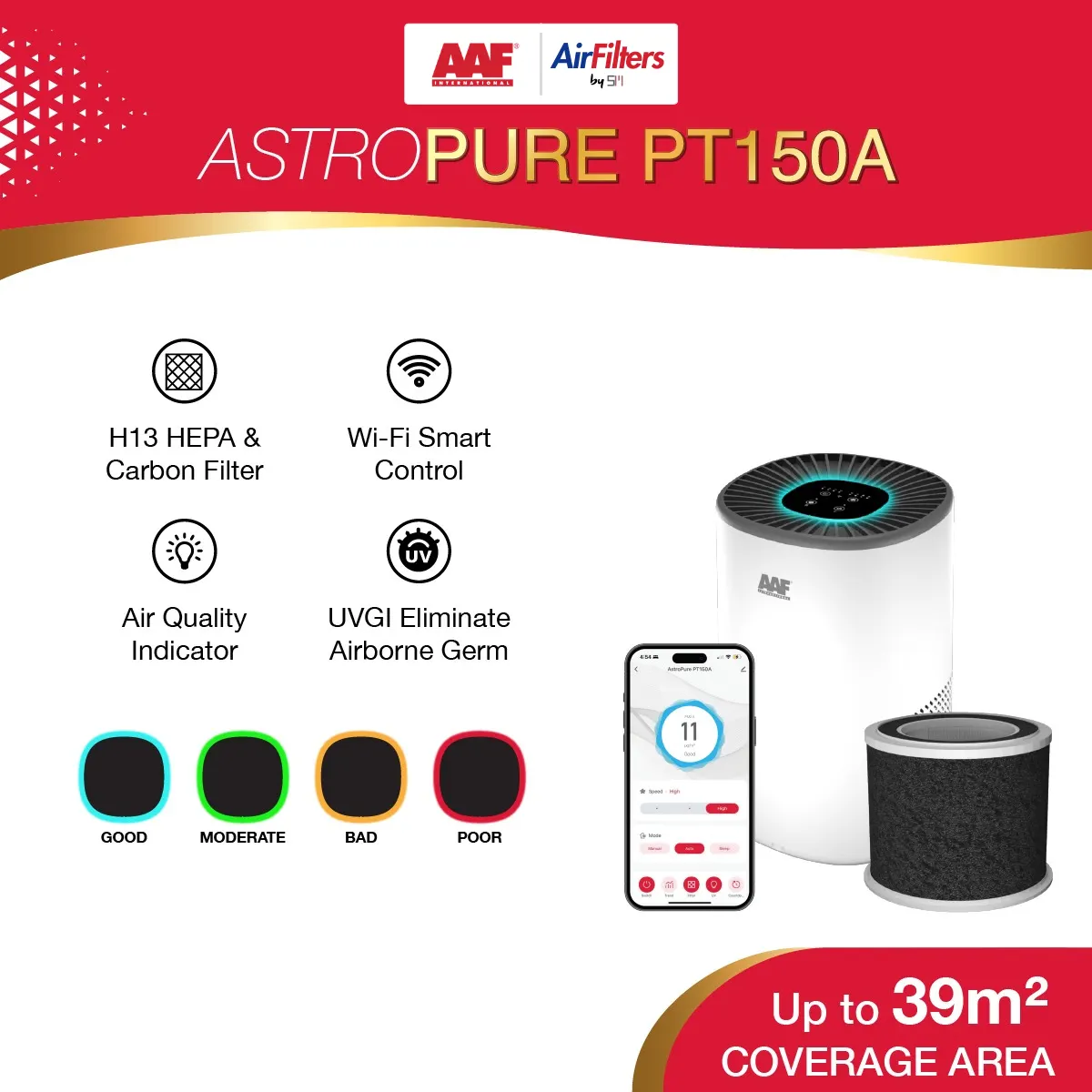 AstroPure PT150A combines compact size with 4 stages of air filtration, effectively purifying polluted air such as pollen, haze, fine dust and odours, and even the health threatening microorganisms. Lightweight and portable, it ensures cleaner, healthier air wherever you need it — discover the difference today!