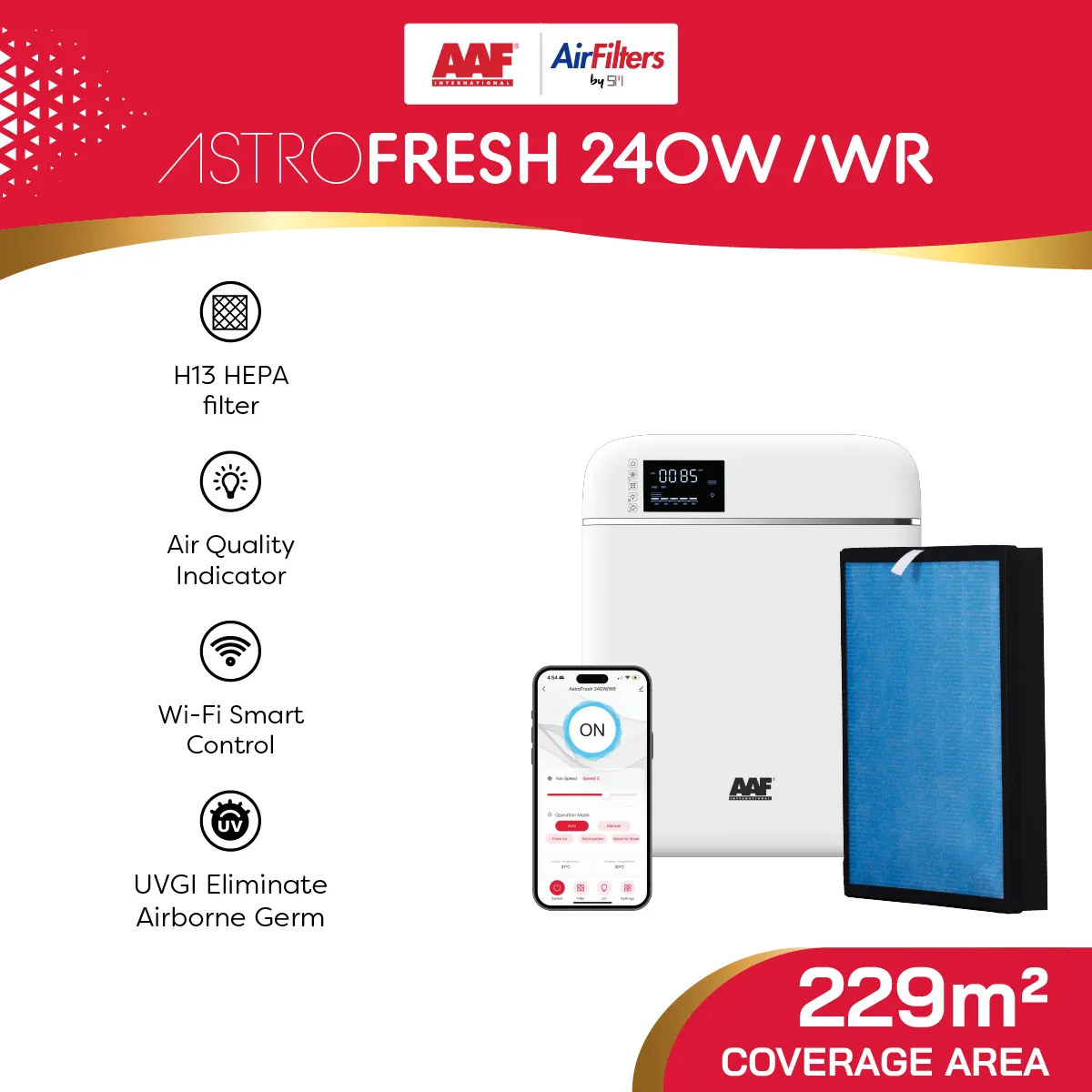 AstroFresh 240W combines advanced air purification with high-precision sensors to monitor carbon dioxide, PM2.5 particles, and TVOC in real-time. Featuring powerful 254 nm UVC sterilization at a rate of 99.9% and smart remote control to reduce carbon dioxide by 70% in 60 minutes, it ensures healthier air in any space — learn more today!
